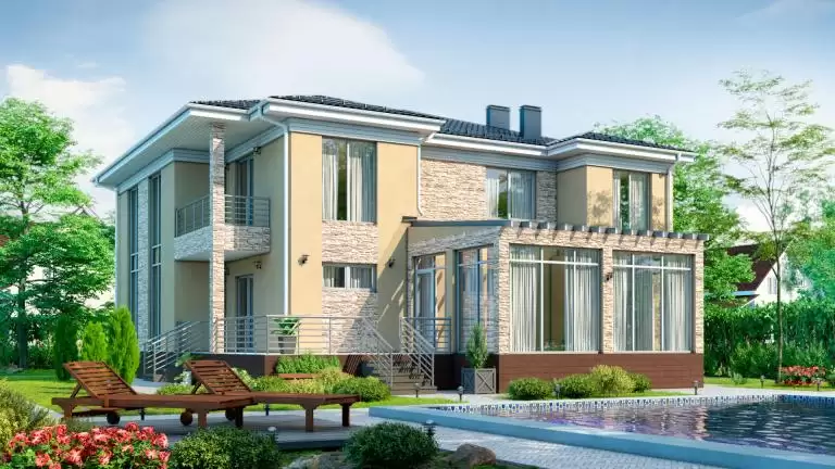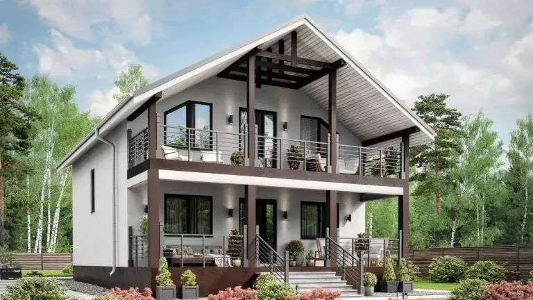 Двухэтажные дома с террасой и балконом очень популярны в загородном строительстве. На террасе можно проводить время с семьей и друзьями или принимать солнечные ванны. Балкон на втором этаже позволяет наслаждаться видами на окрестности, не выходя из дома.